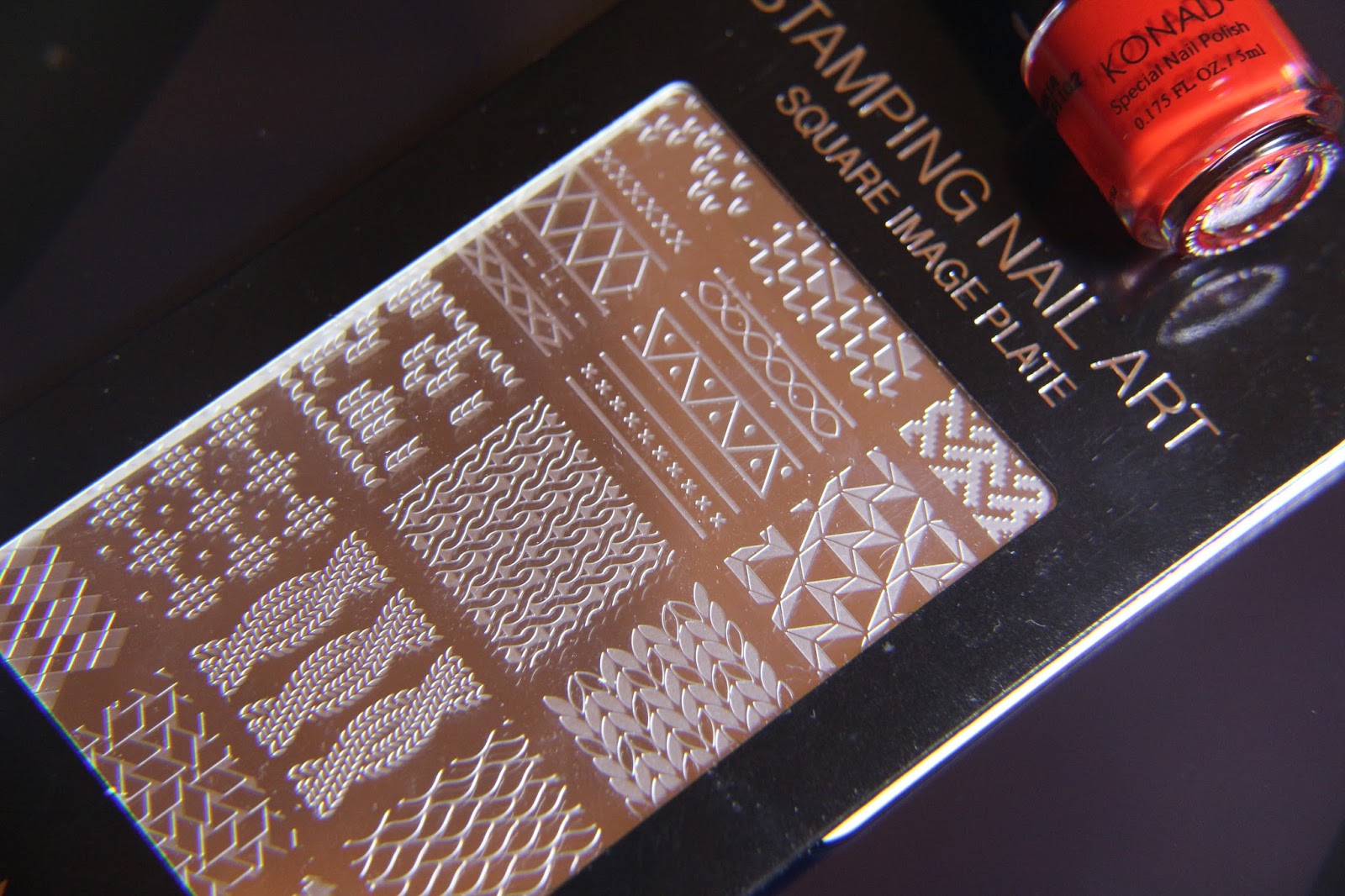 Такие лаки смотрятся еще интересней с каким либо дизайном, желательно контрастным. В этот раз я выбрала очень активный рисунок с плитки Konad 21